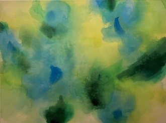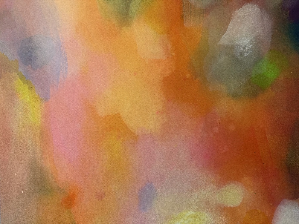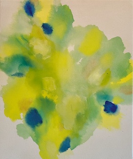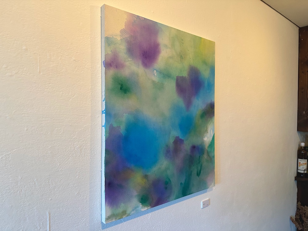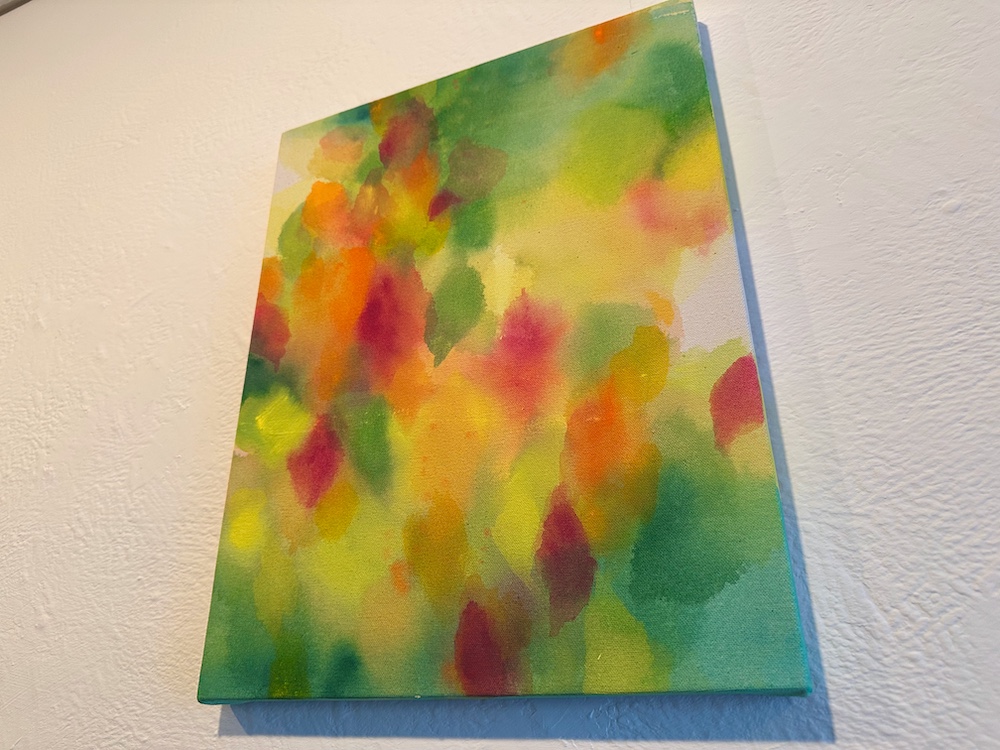 佐藤さんの絵画は自然の中に身を置いた時に感じる光や風、空気や匂い、空、森、木々や葉の動きなど、五感で感じるものを抽象的に絵画として表現されたことで、絵画を目の前にした時に作家が感じたのであろう自然の揺らめきのようなものを追体験します。