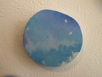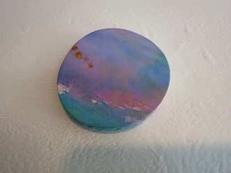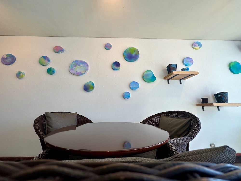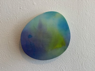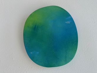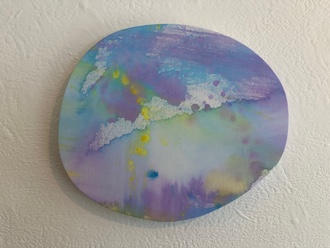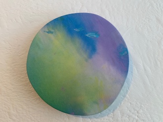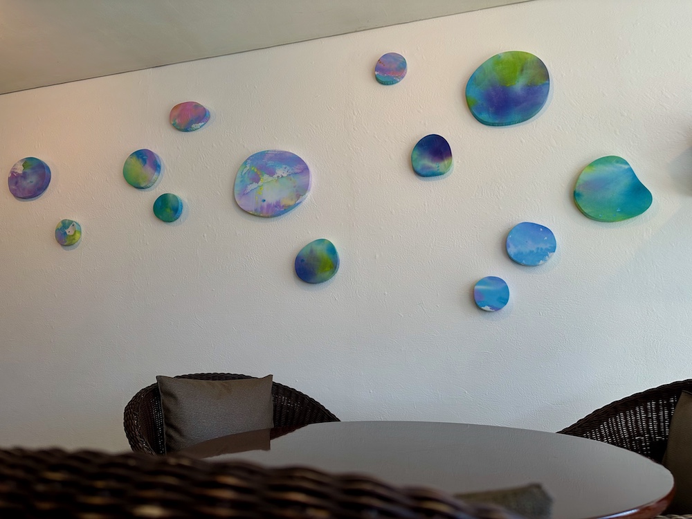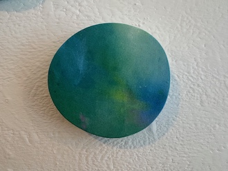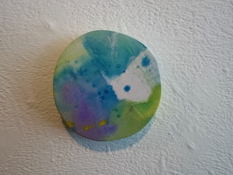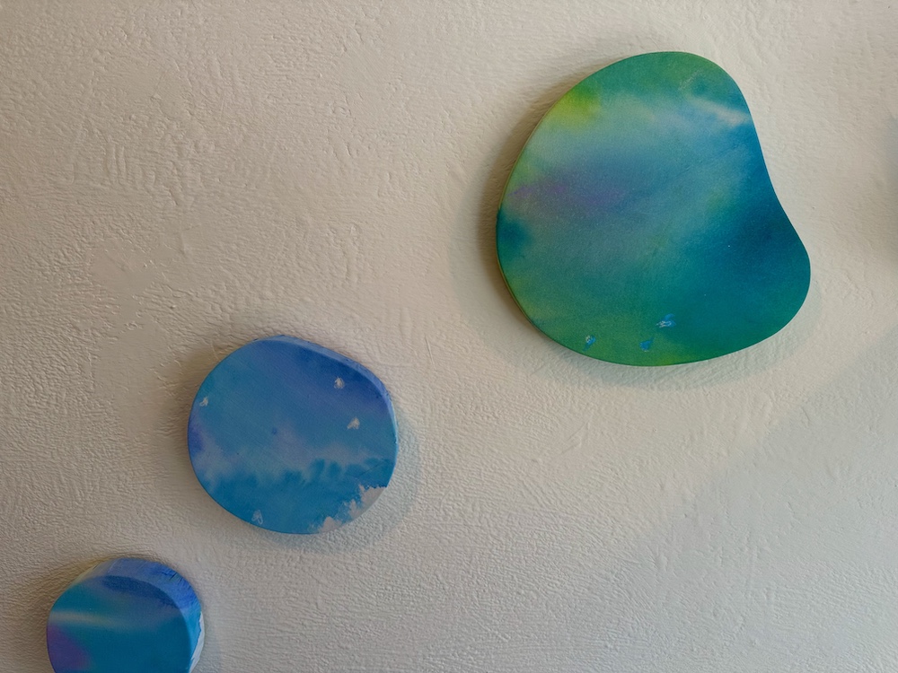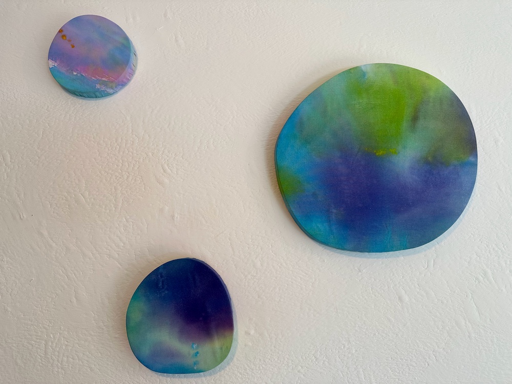 壁面に掛けられインスタレーションされた円形の作品はPuddleシリーズです。